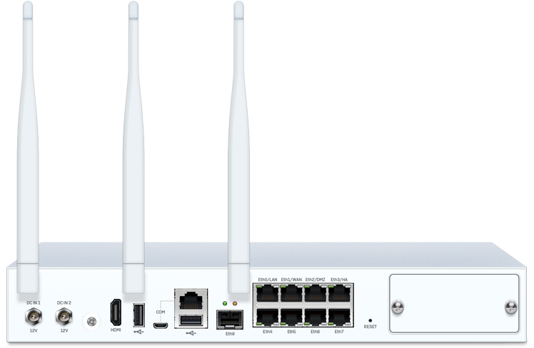 Alle unsere Desktop Appliances sind mit integriertem Wireless Controller zum Anschluss und zur Verwaltung von Sophos Access Points erhältlich. Für noch bessere Performance und Reichweite können Sie auch einen zweiten WLAN-Sender zur SG 135w hinzufügen.
